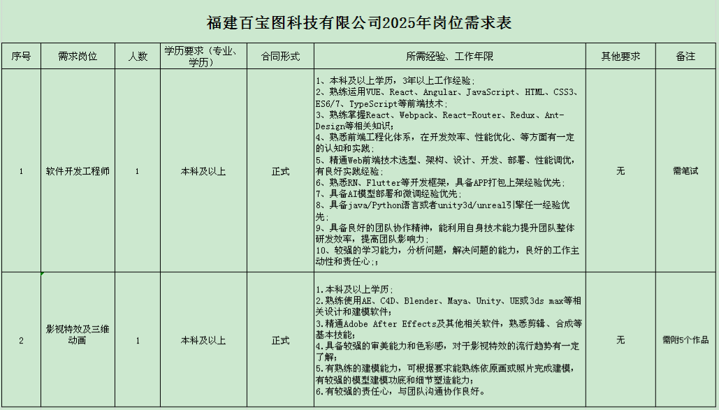 附件1:福建百宝图科技有限公司2025年岗位需求表(第三批).xlsx