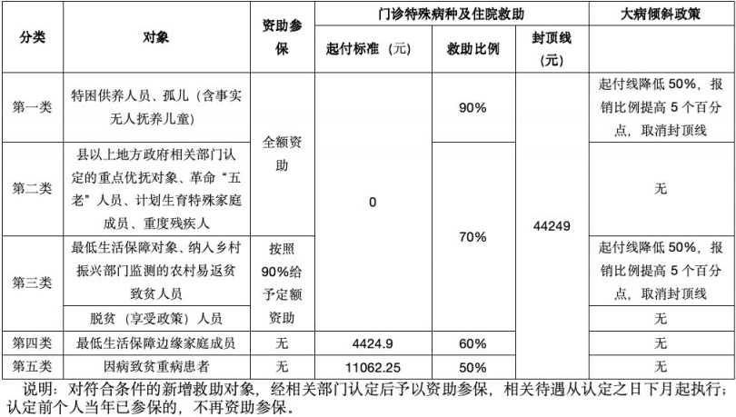 4.大病补充保险待遇:参保人员因大病发生的个人负担的医保政策范围内住院及门诊特殊病种医疗费用,超过23200元部分(起付线),保额30万元,其中,10万以内赔付比例70%、10万至30万赔付比例80%。