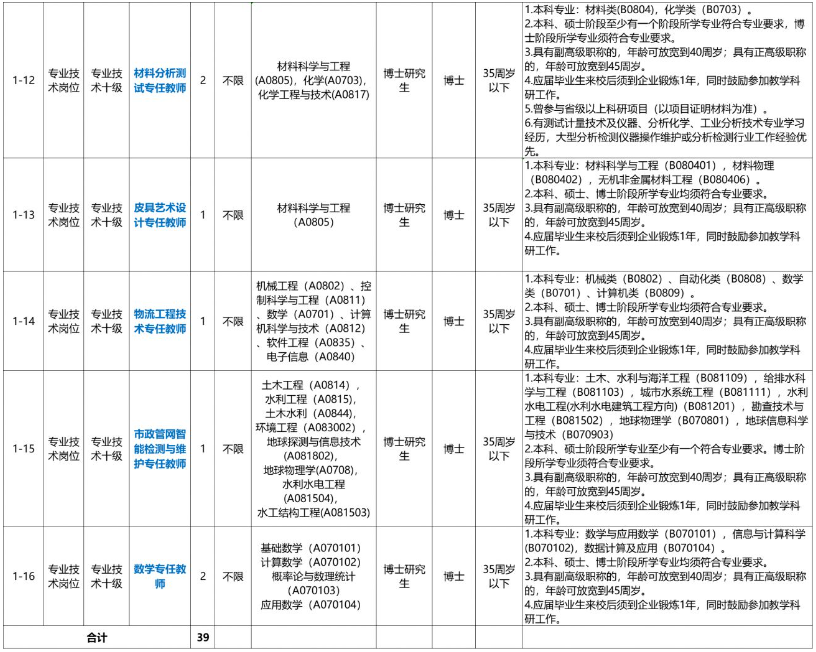 此次拟引进急需人才39名,从事专业技术岗位工作。具体要求详见《广州职业技术大学2025年下半年引进急需人才岗位需求表》(以下简称《岗位需求表》,附件1)。