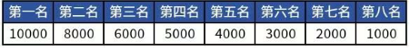按照枪声成绩录取男、女前八名,分别获得以下奖金(人民币)。