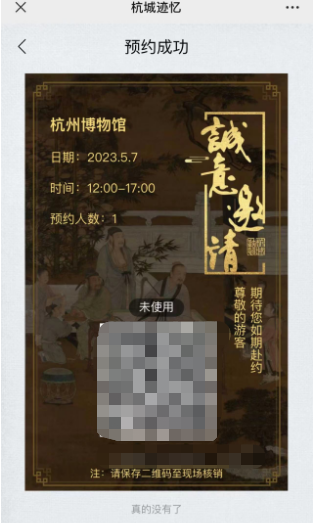 三、出现如下页面即为预约成功,这个时候建议记得截图保存!入馆的时候出示二维码扫码即可