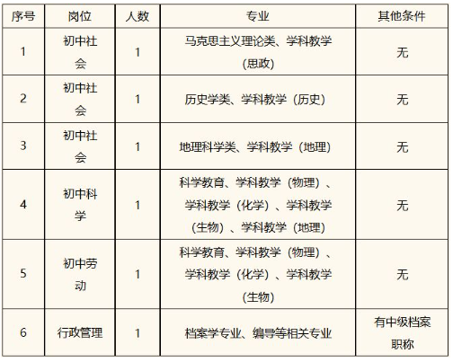 2、教师岗位具有适用的教师资格证书(初中及以上),行政管理岗位具有档案中级职称。