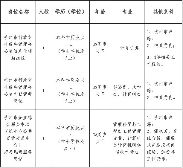- 12025杭州市行政审批服务管理办公室及所属事业单位招聘公告