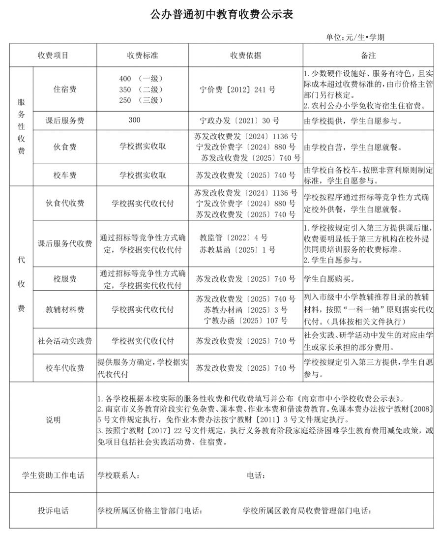 2025南京小学学费收费标准表介绍根据《2025年秋季教育收费公示表》,南京市公......