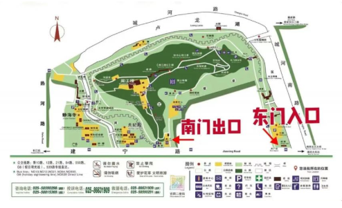 1.由于免费开放日当天人流量较大,景区开放东门为入口,线路设置为单向通行,出口为南门建宁路口、南门电梯口、南门电梯登山道口。