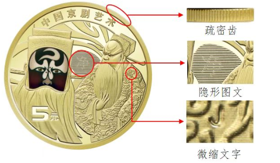 中国京剧艺术净角纪念币防伪特征介绍(一)疏密齿硬币外缘分布有疏密排列的丝齿。(二......