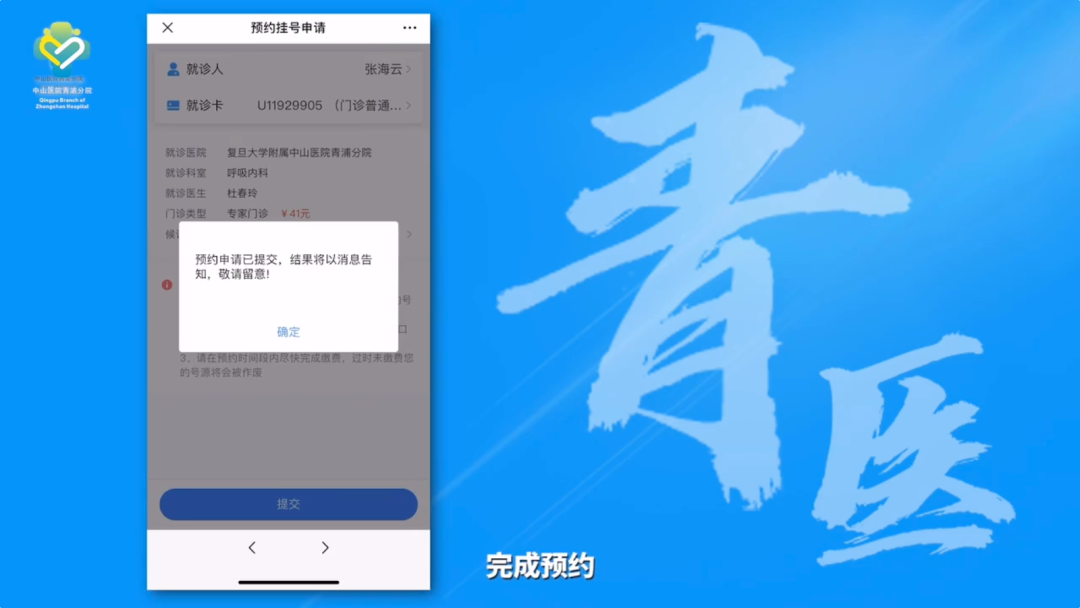1、点击关注“复旦大学附属中山医院青浦分院”微信公众号或支付宝生活号。
