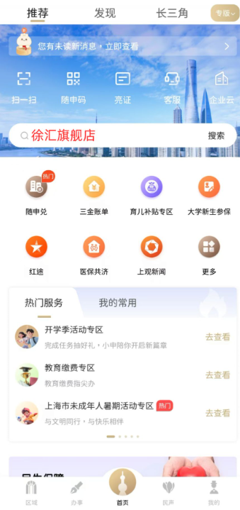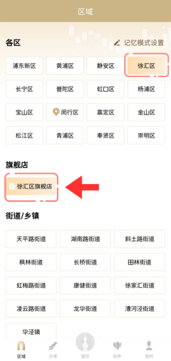 登陆随申办小程序或App,在区域内选择徐汇区→徐汇区旗舰店,或直接搜索“徐汇旗舰店”。