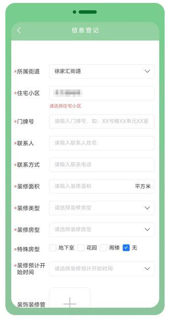 此次上线的“装修垃圾清运”功能,融合了全市装修垃圾清运管理系统,并结合徐汇区域特点,打造便捷预约路径,通过手机端即可完成全流程预约。居民登录“随申办”App,进入“徐汇区旗舰店”,就能轻松找到入口,填写所属街道、小区名称、联系人等基本信息,即可完成预约。