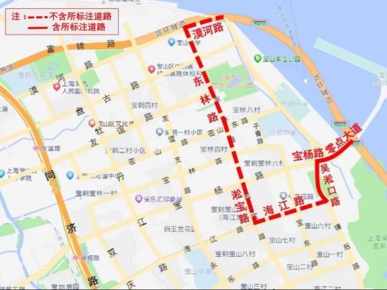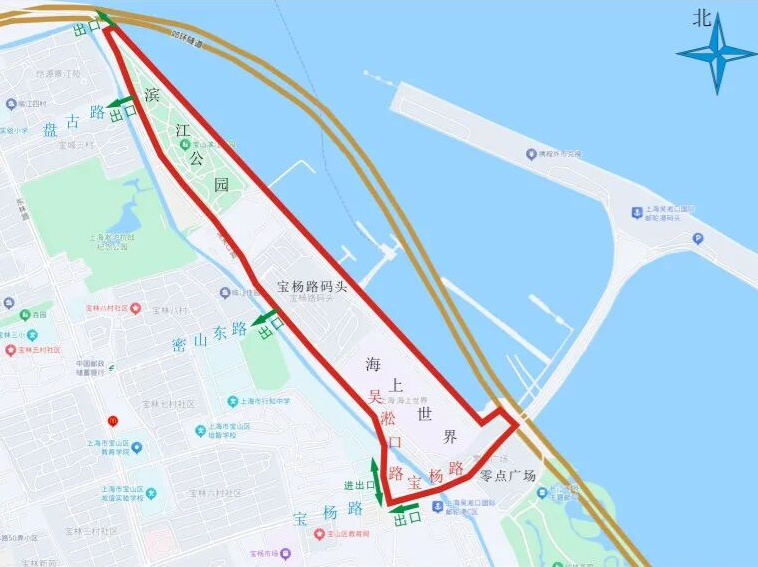 2025年9月30日、10月1日每日18时至22时,沿漠河路-东林路-淞宝路-海江路-吴淞口路-宝杨路-零点大道以及长江江堤,围合区域内的地面道路(不含上述道路,含吴淞口路、宝杨路、零点大道),禁止车辆通行。