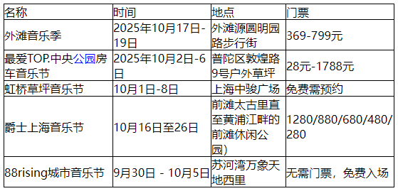 嗨唱上海!上海在10月举办了超多音乐节,包括外滩音乐节、房车音乐节、草坪音乐节等。