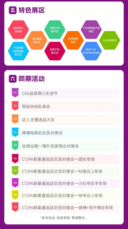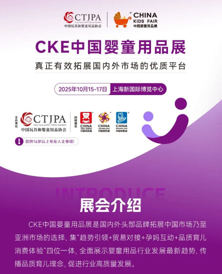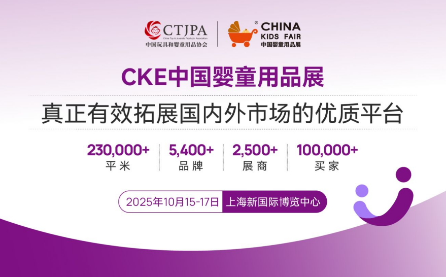 2025年10月15日至17日,由中国玩具和婴童用品协会(简称中国玩协)主办的CTE中国玩具展&潮玩展、CLE中国授权展、CKE中国婴童用品展、CPE中国幼教展(简称中国玩协四展)以“共享跨界资源、引领创新趋势”为主题,将汇集全球40多个国家和地区以及20大玩具、婴童用品主产区2500+展商携5400+品牌、2600+全球正版IP参展,展览面积覆盖上海新国际博览中心全部展馆达23万平方米,齐聚国内外10万+专业观众,其中,海外买家预计超10000人,吸引央媒、主流媒体等300+海内外媒体和1000+KOL联合传播。