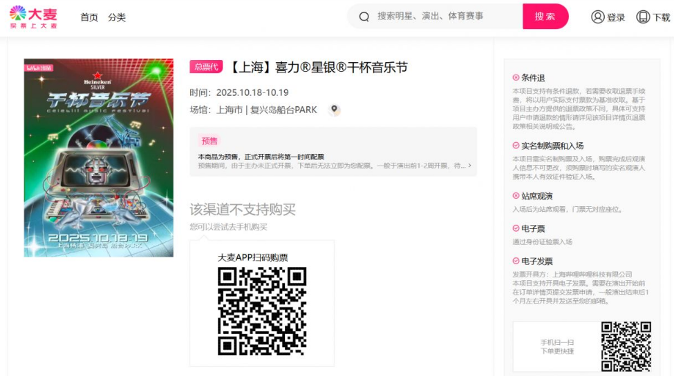 购票提示:打开大麦App,搜索【干杯音乐节】进入