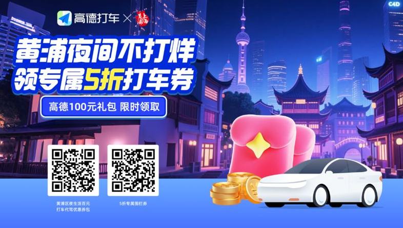 黄浦区联合高德打车,推出六期夜间出行优惠。活动期间,在每日22点至次日2点间,前往黄浦区特定夜生活消费热门地点,或从黄浦区特定夜生活消费热门地点出发,即可领取5折打车券(最高减10元)及黄浦夜生活百元券包,内含多张打车、代驾立减券,安心出行,全程护航。