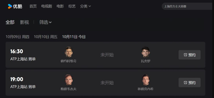优酷网提供全程直播,可通过优酷APP或网页端搜索“ATP上海劳力士大师赛”获取最新直播链接。