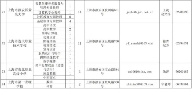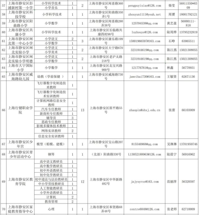上海市静安区教育系统2026年第一批教师公开招聘,涉及74家事业单位、369个岗位。