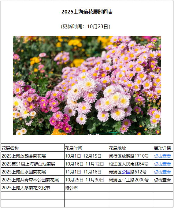 本次菊花展将配合闵行“春申美好生活季”,从文化艺术、旅游休闲、展览展会等多角度进行串联,助力闵行打造城市级消费与文化盛会。活动时间将从10月延续至12月。