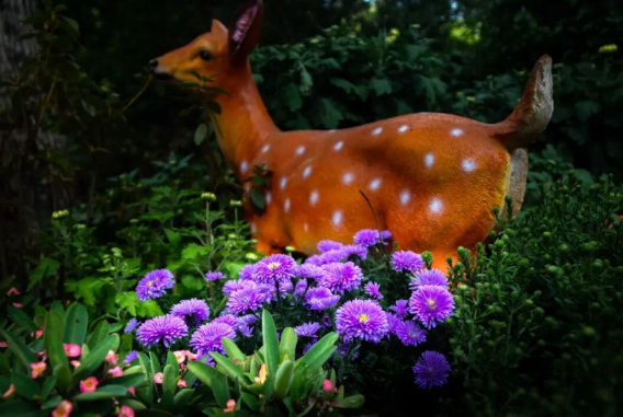 醉白池在总结历届花展经验基础上,结合江南园林文化基因,以雅致、绚烂、明快为设计主调,结合鹿、国画、绢本等传统符号,巧妙融合江南古典园林的建筑元素,匠心打造金秋菊韵美好景象。