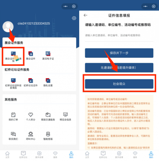 第三步:点击【展会证件信息填报】,点击【社会观众】