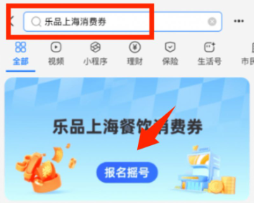 第一步:打开支付宝App,搜索【乐品上海消费券】,点击【报名摇号】进入活动页面;