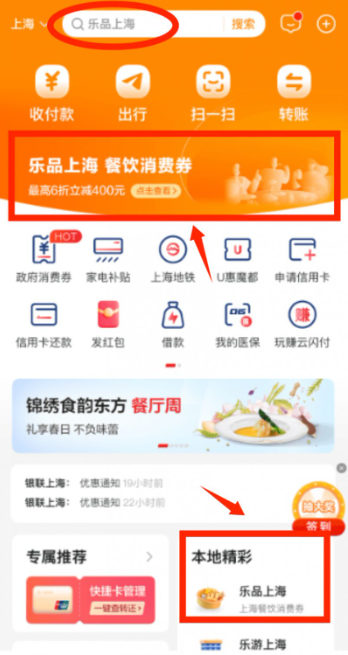 银联云闪付:云闪付APP“本地精彩”专区“乐品上海”,或在主页搜索“乐品上海”进入活动页面;