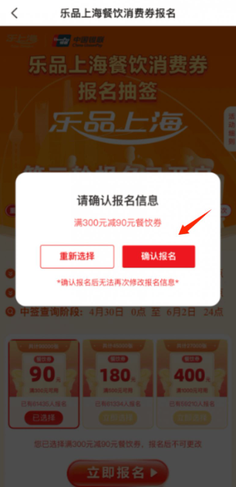 第四步:进入报名页面,三种消费券选择一种,点击下方的【立即选择】,然后点击【立即报名】;