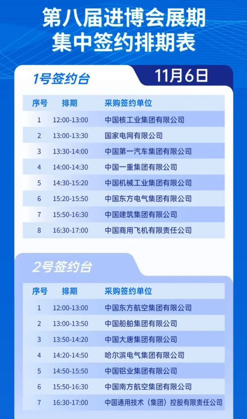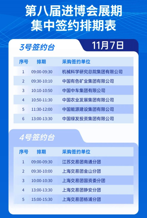 自首届以来,进博会为各交易团提供集中签约台服务,为促进展期成交、更好呈现展客商参会成效发挥积极作用。欢迎媒体记者到场采访报道。