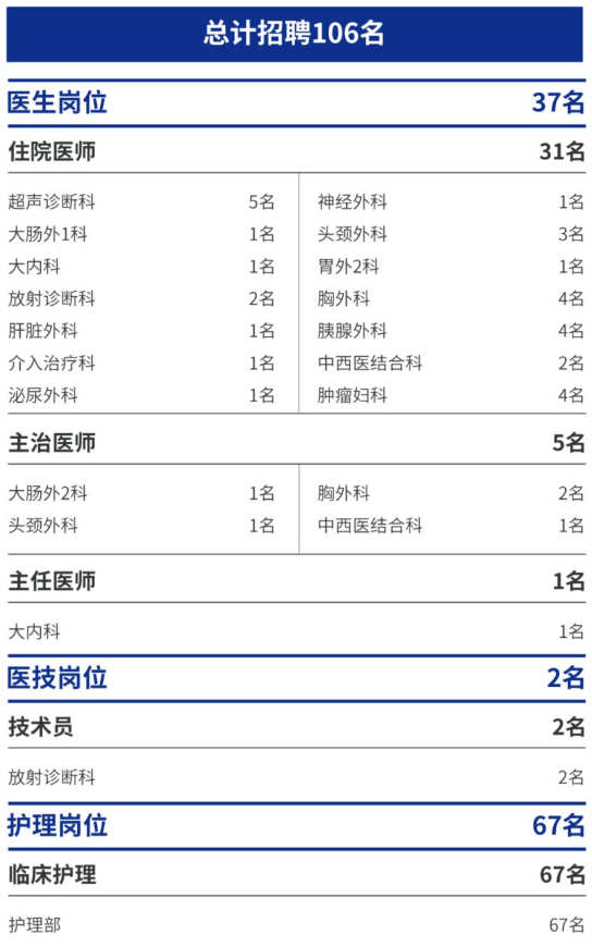 医院部分科室后续将发布补充岗位请持续关注复旦大学附属肿瘤医院官网(www.shca.org.cn)