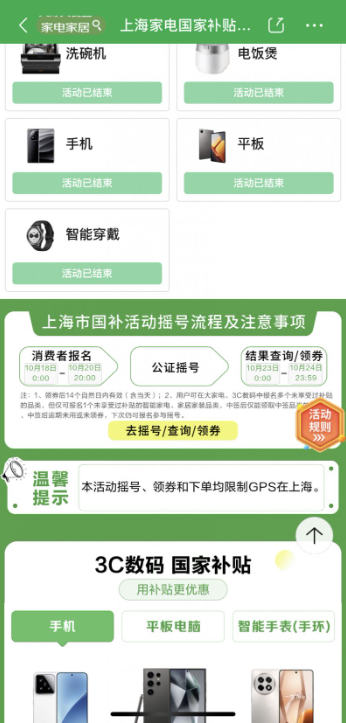 中签消费者须在11月6日00:00至11月7日24:00期间领取中签品类补贴资格券。逾期未领取的视为自动放弃,后续可继续参与该品类活动报名。