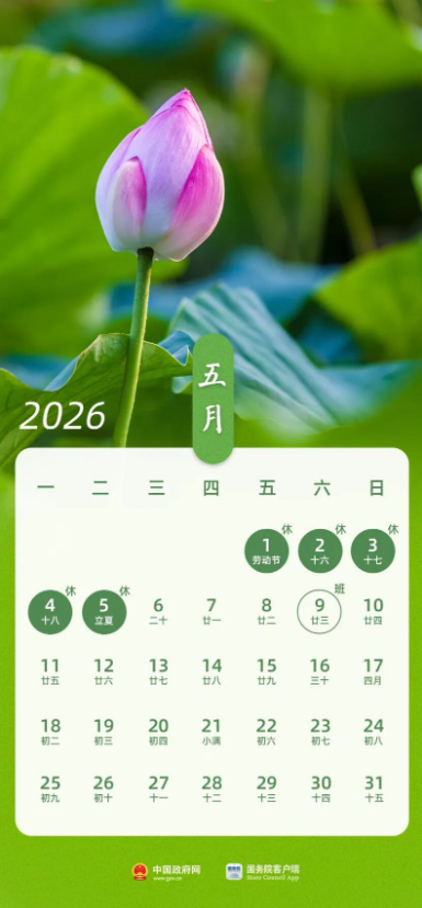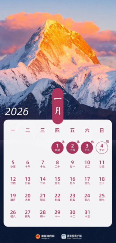 - 4国务院办公厅关于2026年部分节假日安排的通知