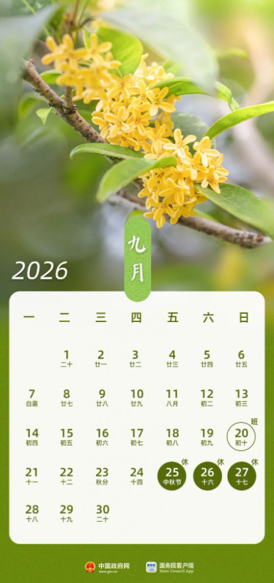 六、中秋节:9月25日(周五)至27日(周日)放假,共3天。