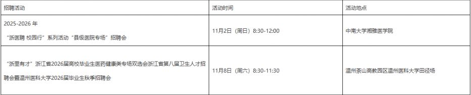 附件1为11月2日中南大学湘雅医学院招聘岗位,11月8日温州医科大学招聘岗位以及其他场次招聘岗位将另行补充公告。