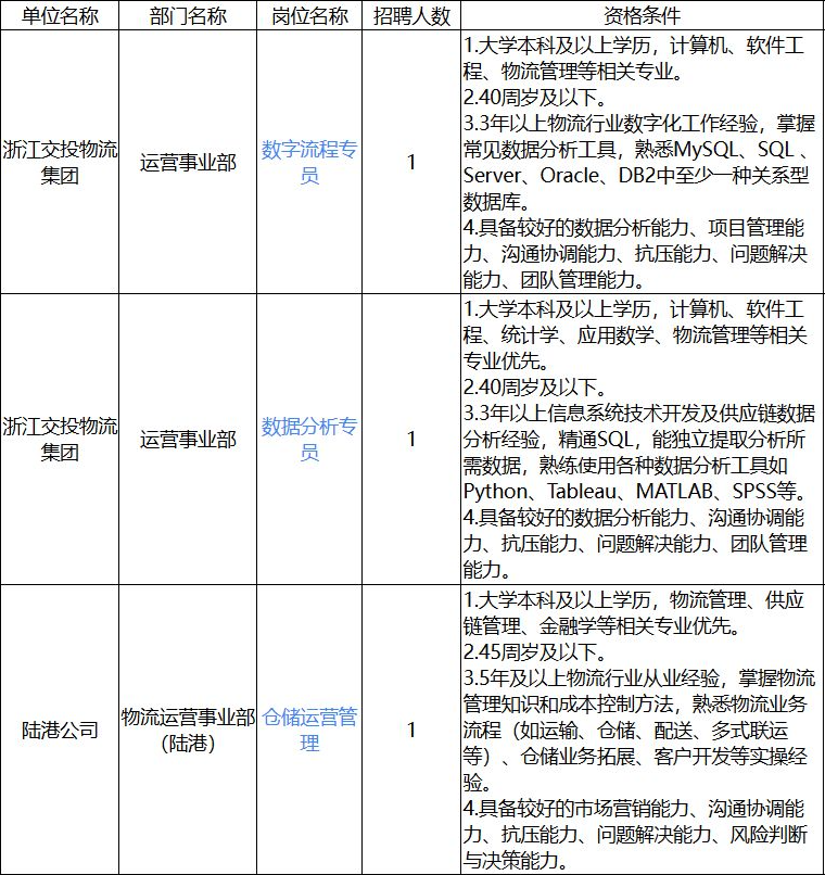- 12025浙江交投物流集团有限公司最新招聘通知