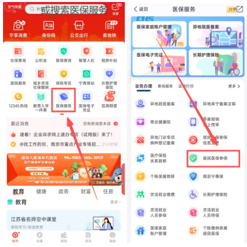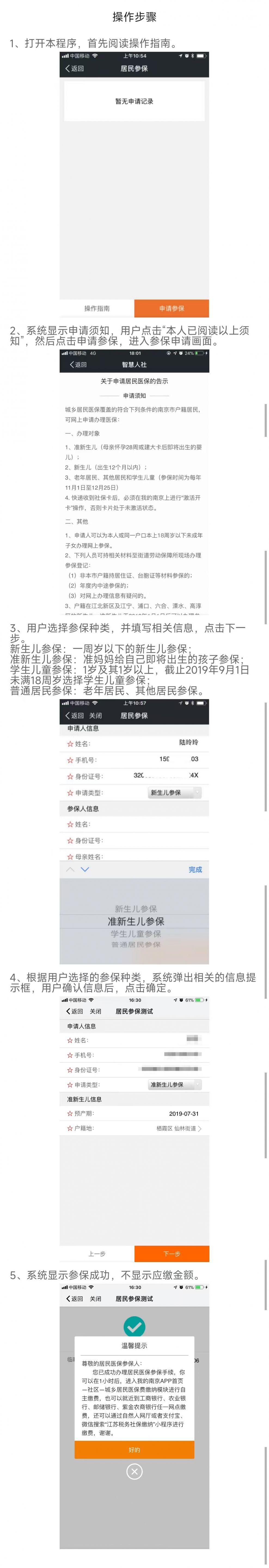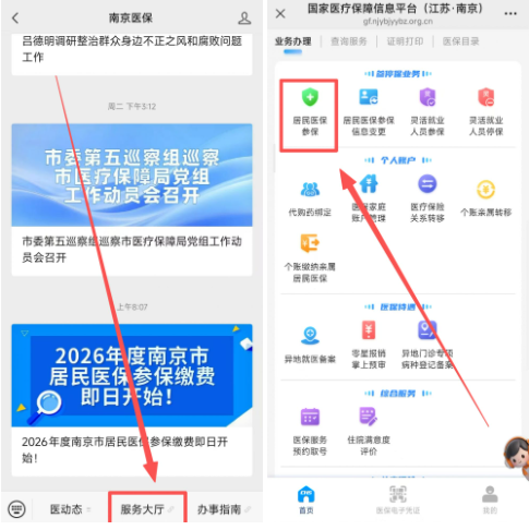 关注“南京医保”微信公众号,“服务大厅—业务办理—居民医保参保”模块办理参保登记手续。