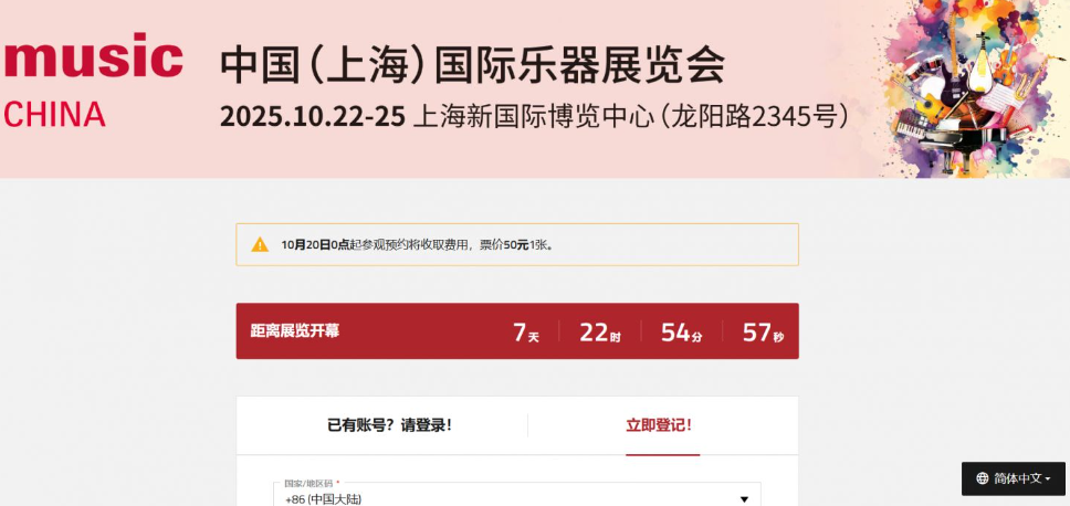 1.2025上海国际乐器展全面实行预约购票制,在10月19日(23:59前)完成预登记的观众可免费入场,10月20号起需提前购票入场,10月25日12:00起观众现场登记通道将被关闭。预约时,请先根据参观者身份选择专业观众、公众、媒体、团体观众报名。