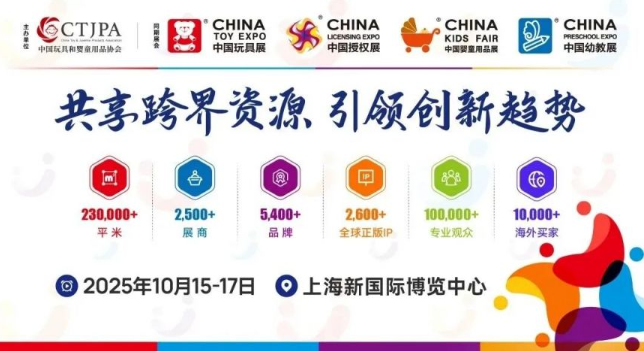 10月15日至17日,由国家级行业协会主办、备受全球展商与买家青睐的CTE中国玩具展&潮玩展、CLE中国授权展、CKE中国婴童用品展、CPE中国幼教展(简称“中国玩协四展”),将在上海新国际博览中心盛大启幕。作为全球领先的玩具潮玩、婴童用品、授权、幼教专业化及国际化商贸平台,本届展会规模再创新高 ——不仅汇聚全球40多个国家和地区、30大主产区的2500+展商,携5400+品牌与2600+全球正版IP集中亮相,更以23万平方米展览面积覆盖场馆全部展馆,预计吸引10W+国内外专业观众到场。