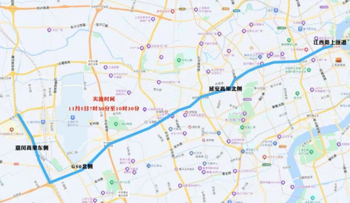 (十)11月5日7时30分至10时30分,诸光路一盈港东路一涞港路一崧泽大道(含上述道路)所合围的区域内,禁止一切车辆及行人通行。